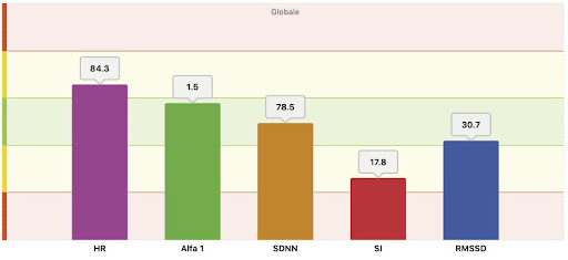 Voici pour l'exemple, un relevé de mesures pour la VRC, ou variabilité de la fréquence cardiaque.