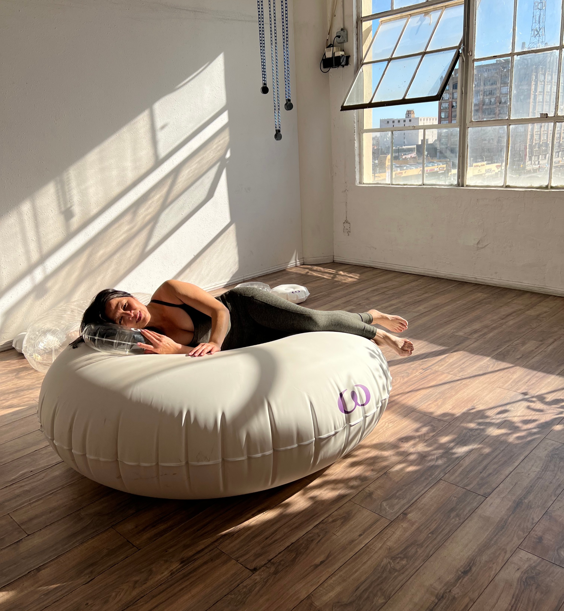Grâce à l'ergonomie du Waff Max vous atteignez spontanément cet état. La relaxation musculaire progresse minute après minute, votre respiration et vos petits mouvements imperceptibles se font écho dans la structure du coussin ergonomique. Cela maintient l'apport de l'effet kinesthésique qui vous accompagne et vous berce.